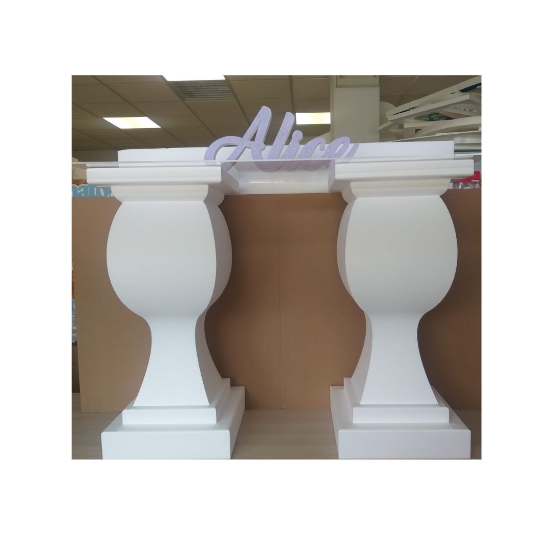 Coppia di colonne in polistirolo densità 30 che formano un tavolo con lastra in plexiglass di spessore 5 mm (cm 120x50), venduto a parte.