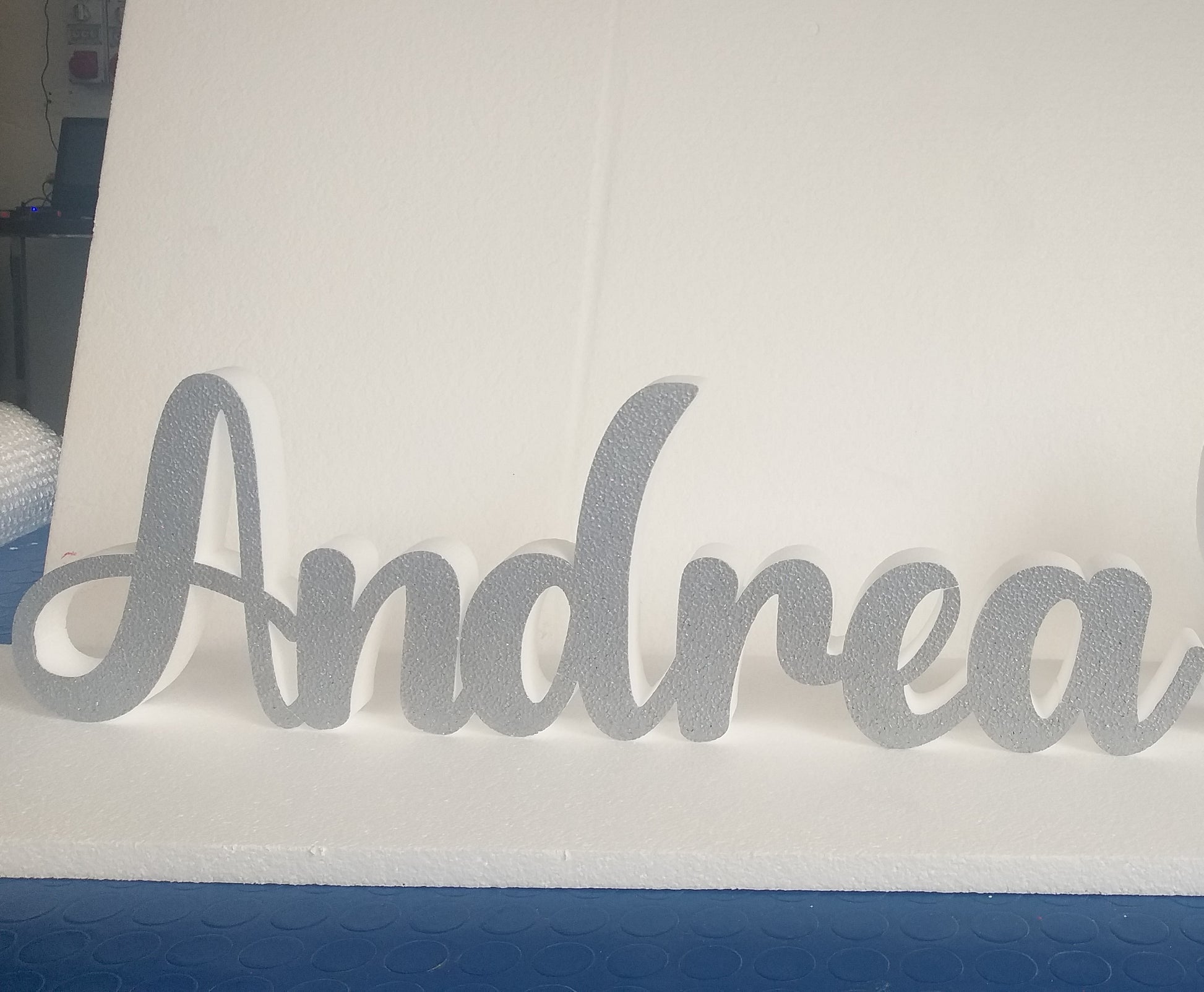 Produciamo in polistirolo densità 30 nomi e sagome a tema, se la festa è a tema di qualche personaggio, di cartoni animati, film o fumetti, noi lo realizziamo, usiamo gli stessi colori e lo stesso carattere della scritta. Le dimensioni massime sono 95 x h16 cm. Usiamo solo polistirolo densità 30, più duro e resistente. I nostri colori sono lavabili. Dopo aver utilizzato il nome dopo la festa, inserisci il nome nel contenitore e lo appendi nella cameretta come decorazione. Se si impolvera lo pulisci con una spugna bagnata e rimane eterno nel tempo.