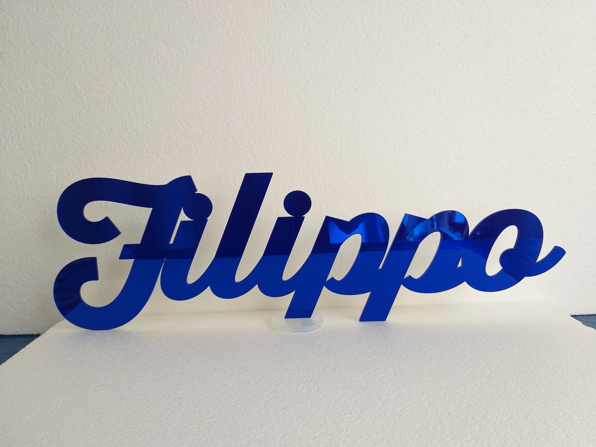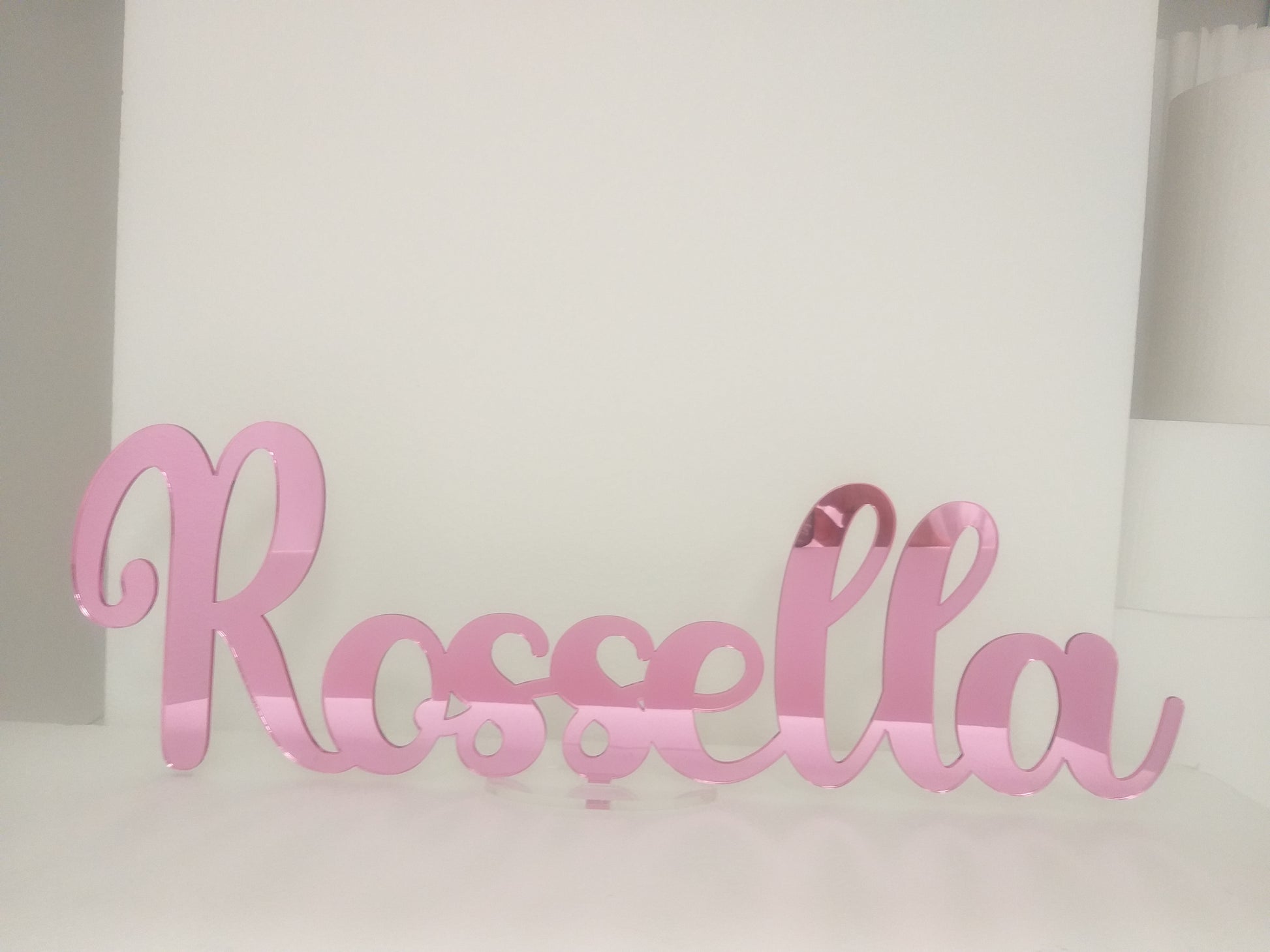 I nostri nomi vengono realizzati in plexiglass specchiato 3 mm specchiato, glitterato ed iridescente