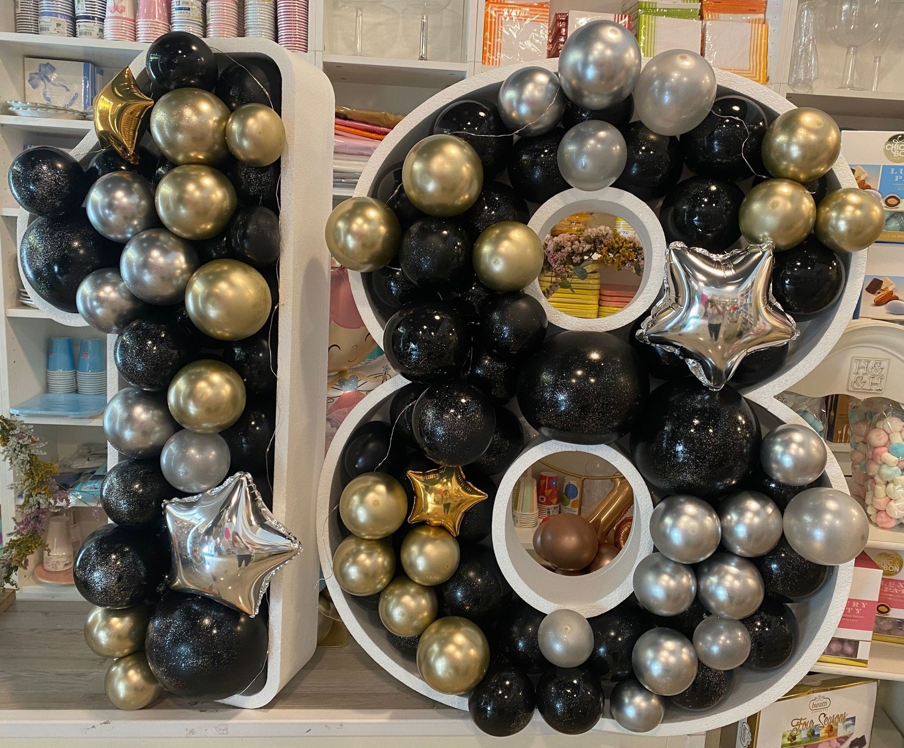 Numero Porta Palloncini h 60 cm, che noi chiamiamo Balloon box, sono decorazioni tridimensionali utilizzate per allestire feste . Sono realizzate in polistirene (polistirolo espanso densità 30) è più duro e resistente di quello che si trova in commercio.
